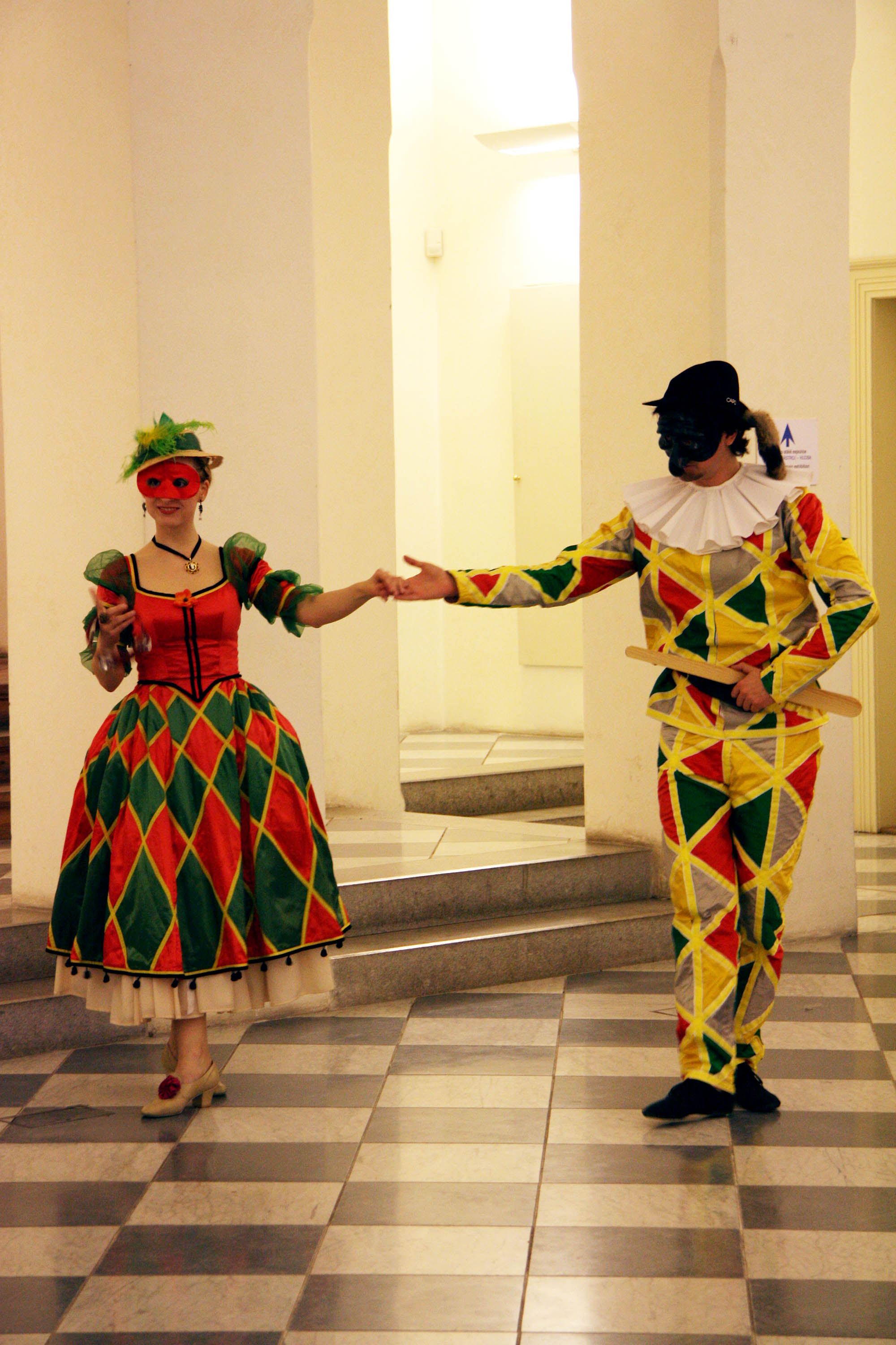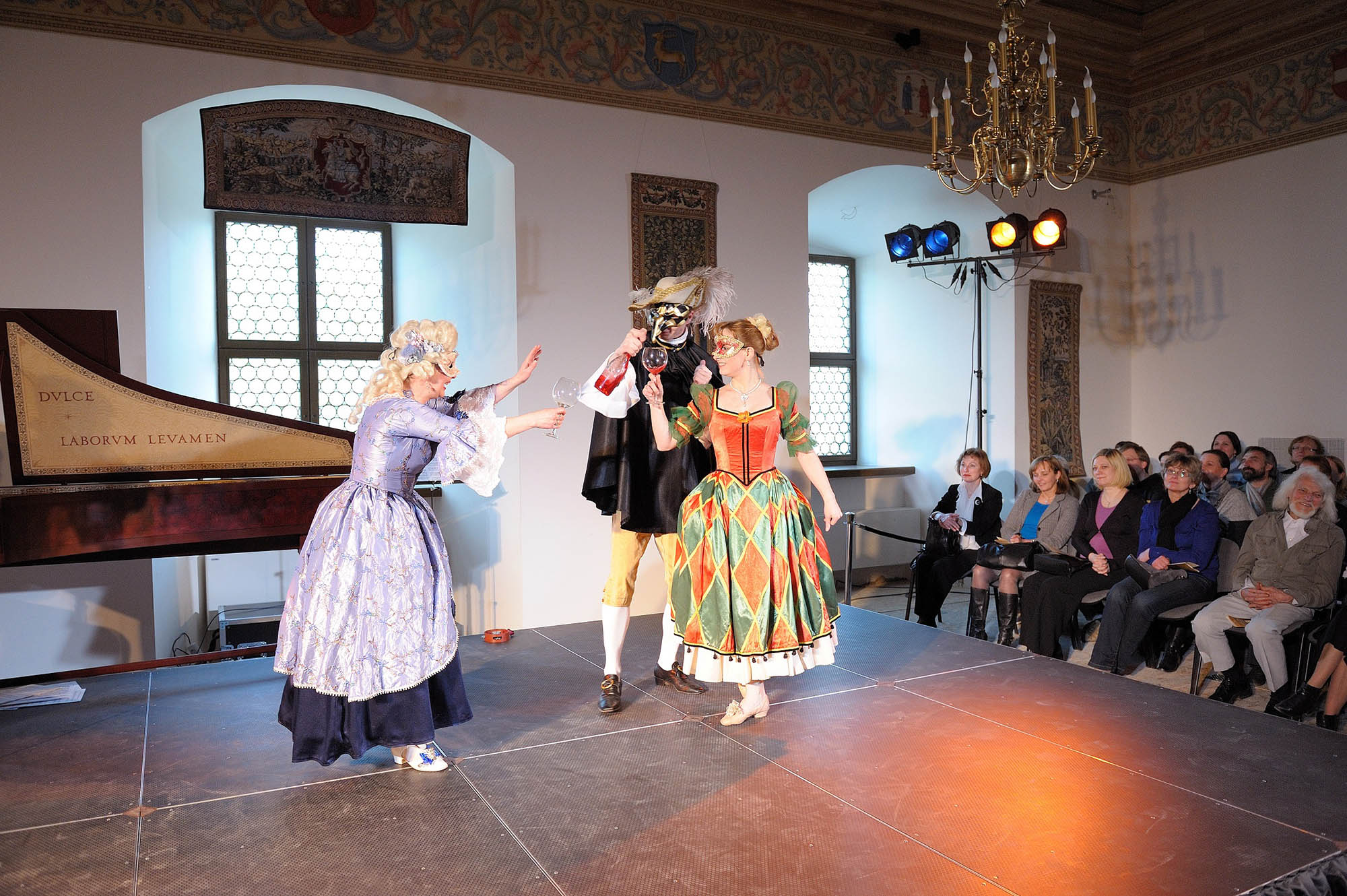 Poznámka: Zvukař, garderobiérka nutná. Vhodné též do historických prostor, vhodné i pro dětské publikum. Je možné spojit s výukou jednoduchého tance a zapojit diváky do akce.