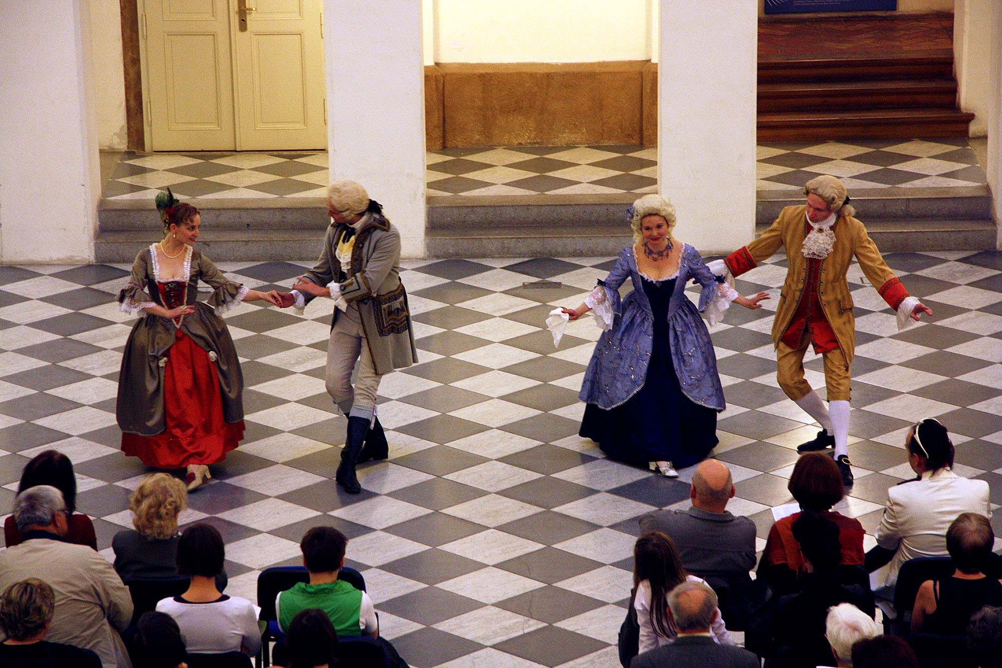 Variabilní program, který představuje evropskou taneční kulturu doby 17.-18. století v dobových kostýmech.